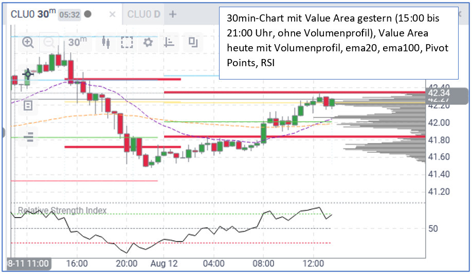 - wenn das morgendliche Hoch von 15 bis 17h nicht durchbrochen wird, kann der Preis zum anderen Ende der Value Area gehen